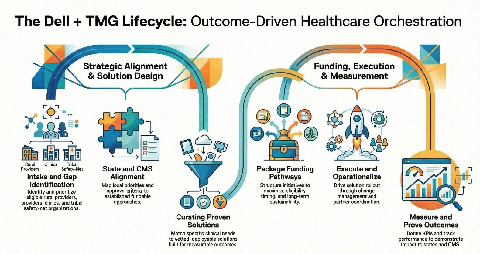 Rural Health, Unlocked! is Dell and TMG’s national strategy for removing the barriers that prevent rural patients, clinicians, and health systems from accessing high-quality, technology-enabled care. It transforms rural health priorities and funding into practical, scalable solutions that improve access, resilience, and outcomes across the entire continuum of care.
